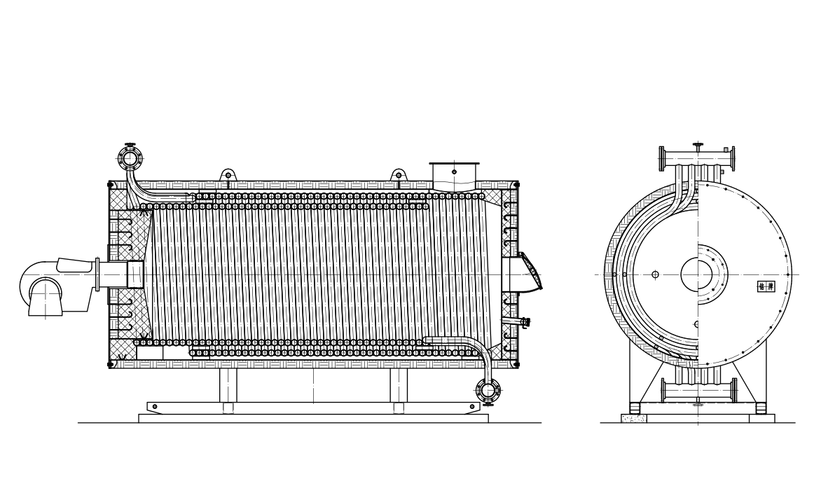 7、流程設(shè)計(jì):煙氣三回程,介質(zhì)流經(jīng)內(nèi)外盤管,流速均勻,運(yùn)行安全、穩(wěn)定。